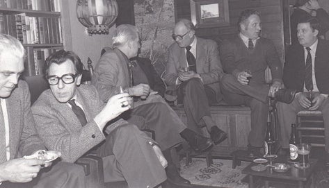 1982 Mochèl 25 jaar bij NS. V.l.n.r. Broekhuis, mont.Sw Vos, Bannink, ?, Brouwer, Ctp de Leeuw en Ate Faber